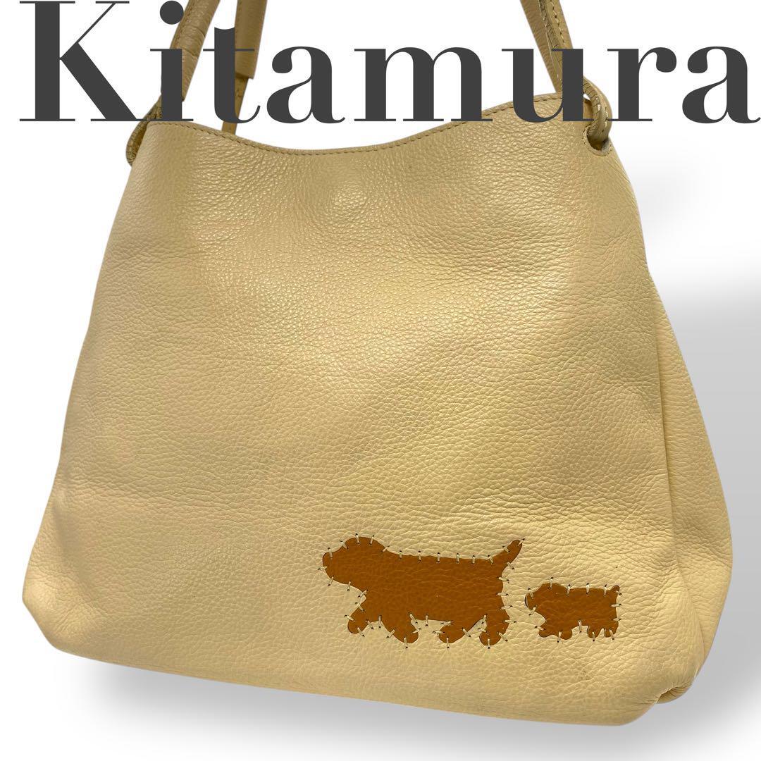 - Kitamura キタムラ ショルダーバッグ レザー ベージュ 刺繍柄