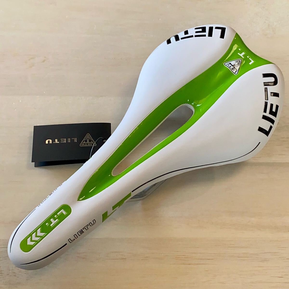 - 自転車サドル スポーツバイク仕様 薄型 ホワイト緑ライン【匿名配送 送料無料】