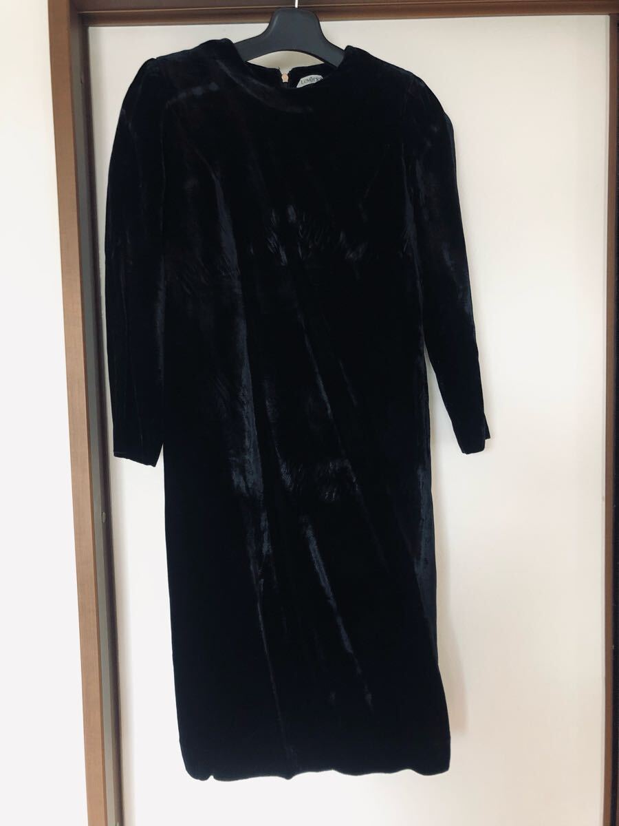 - 11号サイズ ベルベット調・ブラックフォーマルワンピース 長袖 M ひざ下丈