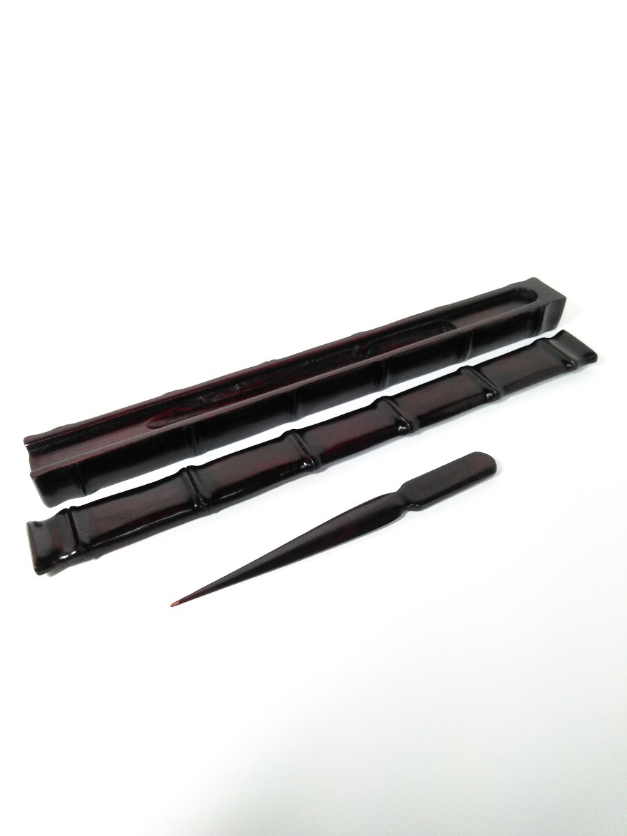 - 木製 レターオープナー ペーパーナイフ 漆器 文具 文房具 アンティーク レトロ (検索) 古道具 骨董 古玩 竹型 和風 小物入 木箱 時代物