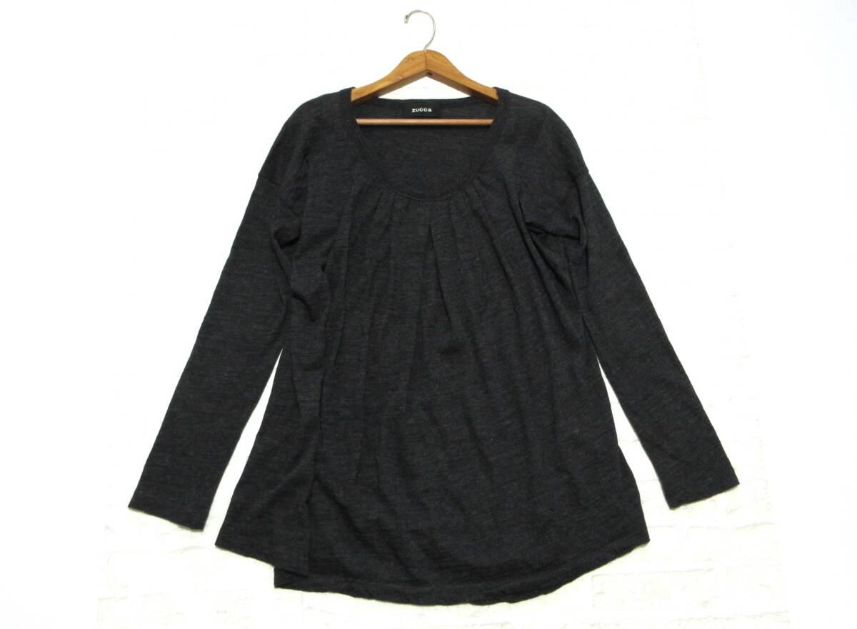 > 美品 送料込み zucca ズッカ グレー ウール ジャージー ドレープ プルオーバー トップス ( 日本製 ストレッチ ゆったり ニット ラクチン )