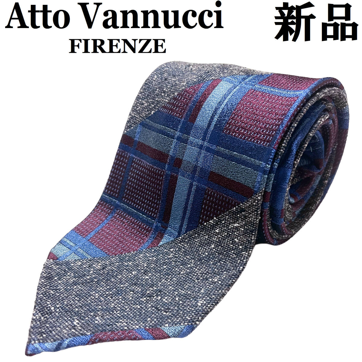 > 【新品】Atto Vannucci アット ヴァンヌッチ ストライプ チェック シルク ネクタイ グレー ワインレッド ブルー スフォデラート 17