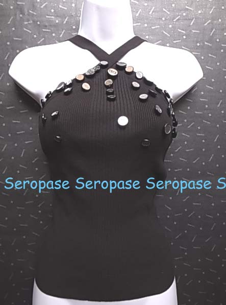 - ★08CシャネルCHANEL沢山のミラーボタンタンクトップ黒38
