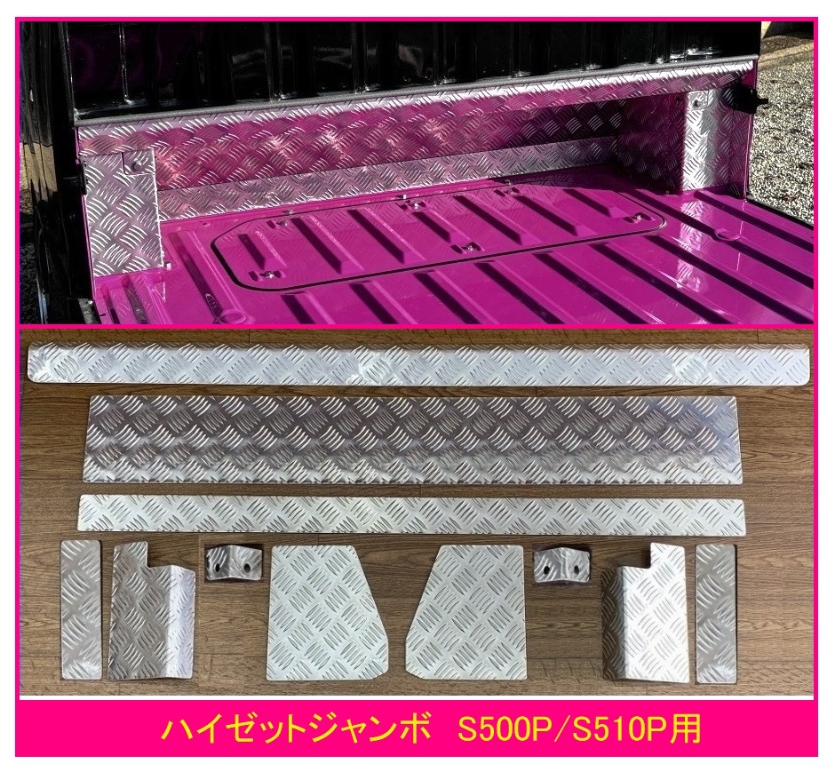 > △軽トラック ハイゼットジャンボ S510P キャビンバックアンダーパネル アルミ縞板 11点SET
