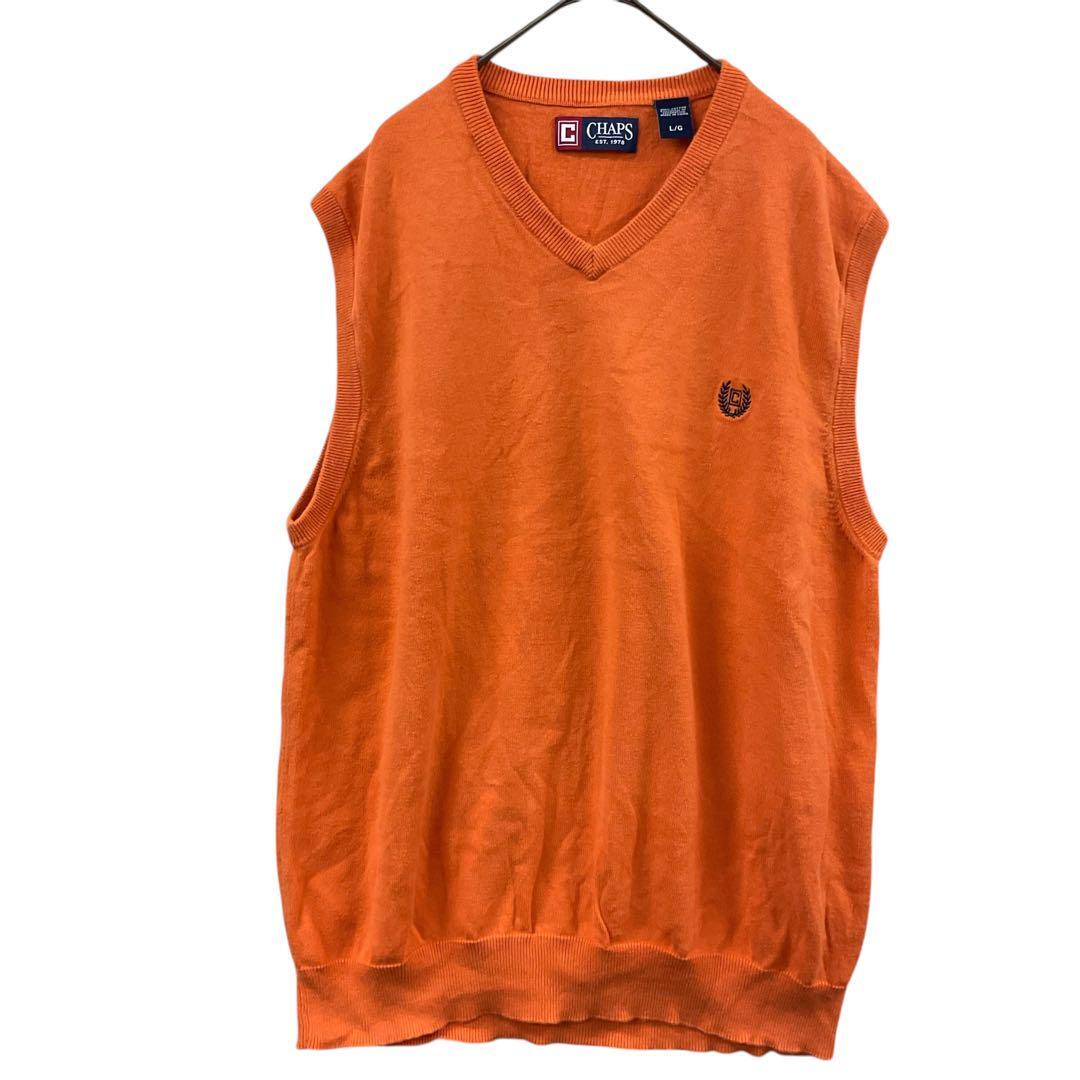 - チャップス メンズニットベスト 橙色 L エンブレム Vネック 【2411】