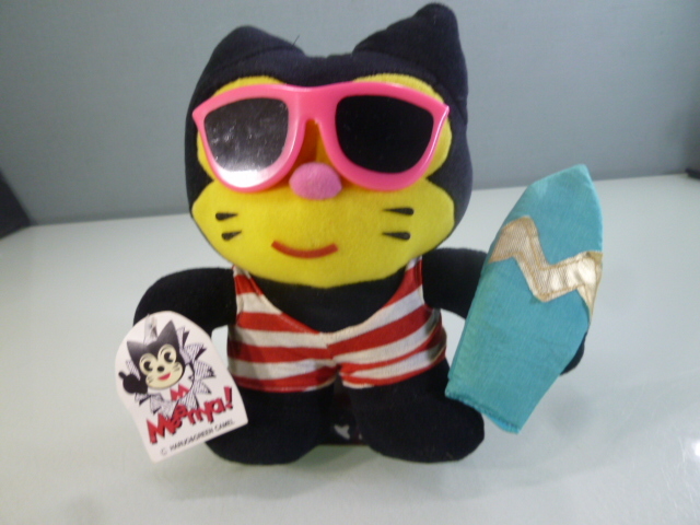 - Meenya/ミーニャ 黒猫キャラ ぬいぐるみ サーフィン ブライズ景品 非売品 昭和レトロ アンティーク当時物 中古
