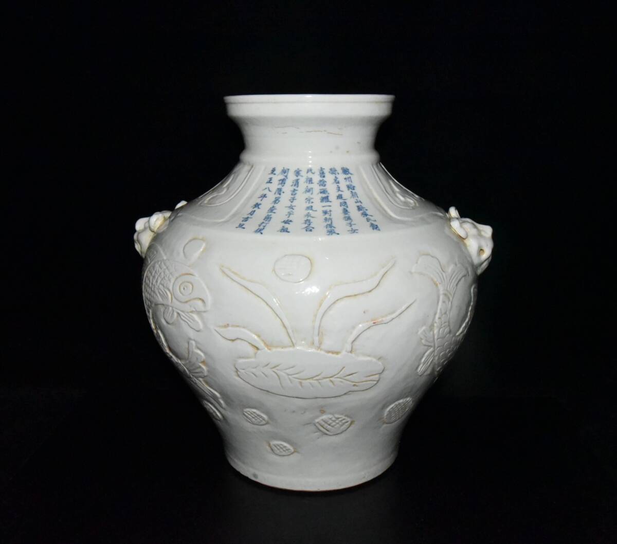 - 【超珍館蔵】元 古陶瓷品 甜白釉 魚藻紋罐 置物 古賞物 古美術品 稀少珍蔵品