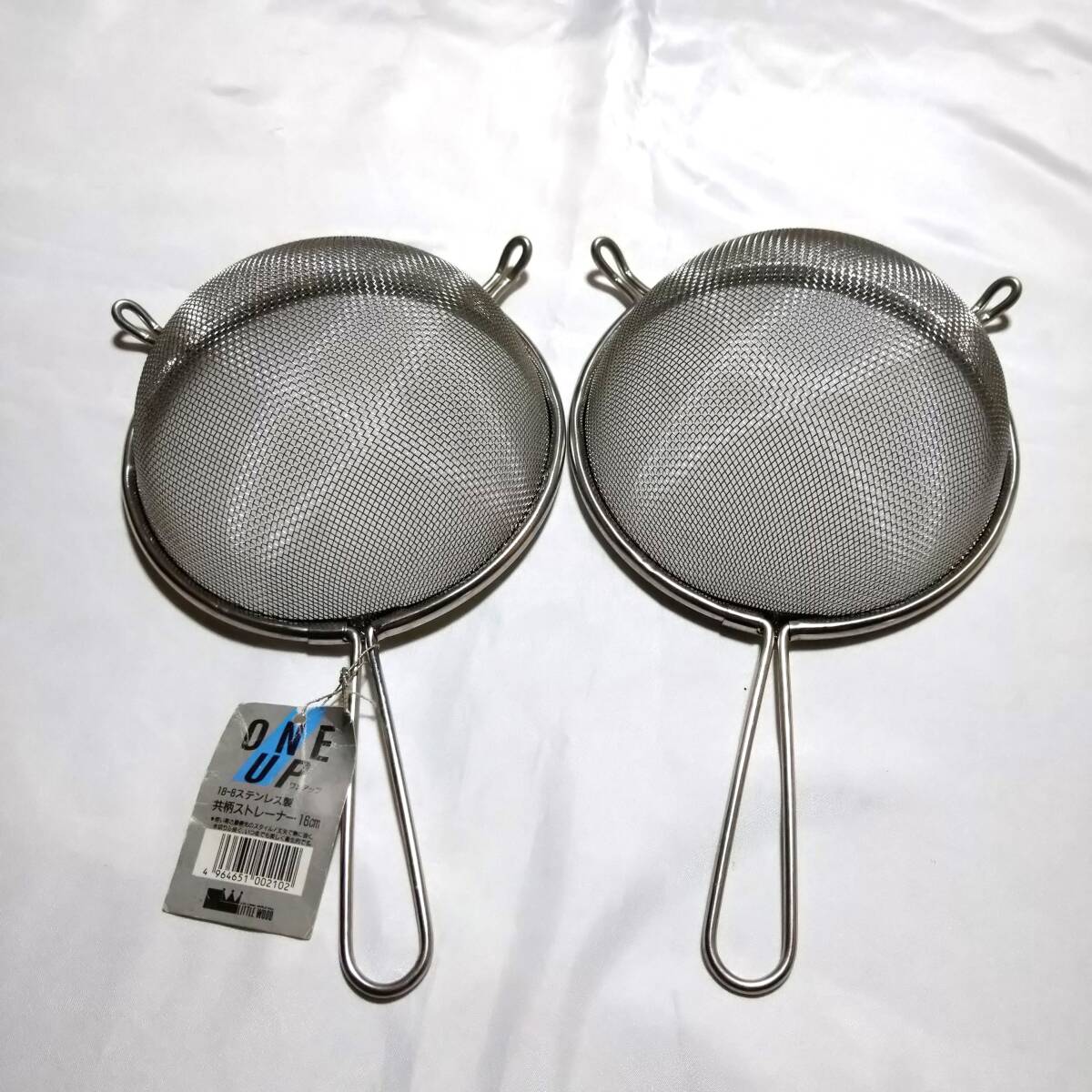 - 未使用、保管品 業務用 厨房備品 日本製 共柄ストレーナー ステンレス(18-8) 外径16㎝/2点セット
