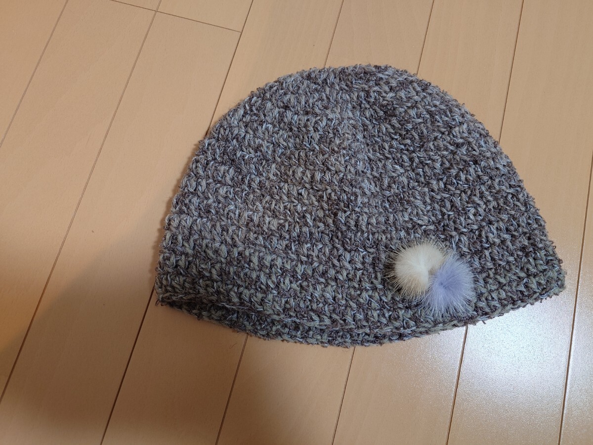 - ブラウングレー系 ニット帽 ニットキャップ ビーニー ハンドメイド 新品