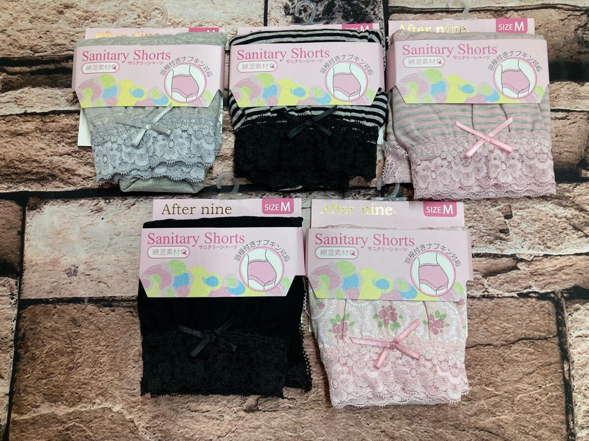 - 『画像から2枚組』羽根付きナプキン対応&ウエスト&足まわりレース仕様 綿混サニタリーショーツ【Mサイズ】