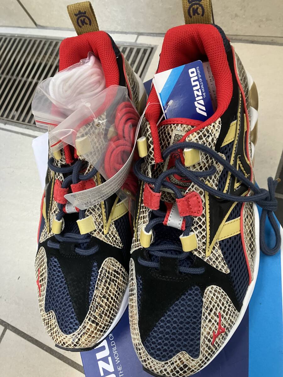 > 新品未使用MIZUNO*24KILATES ウエーブライダー 27.5cm ミズノ ミタスニーカーズ atmos 蛇柄 アシックス コラボ限定