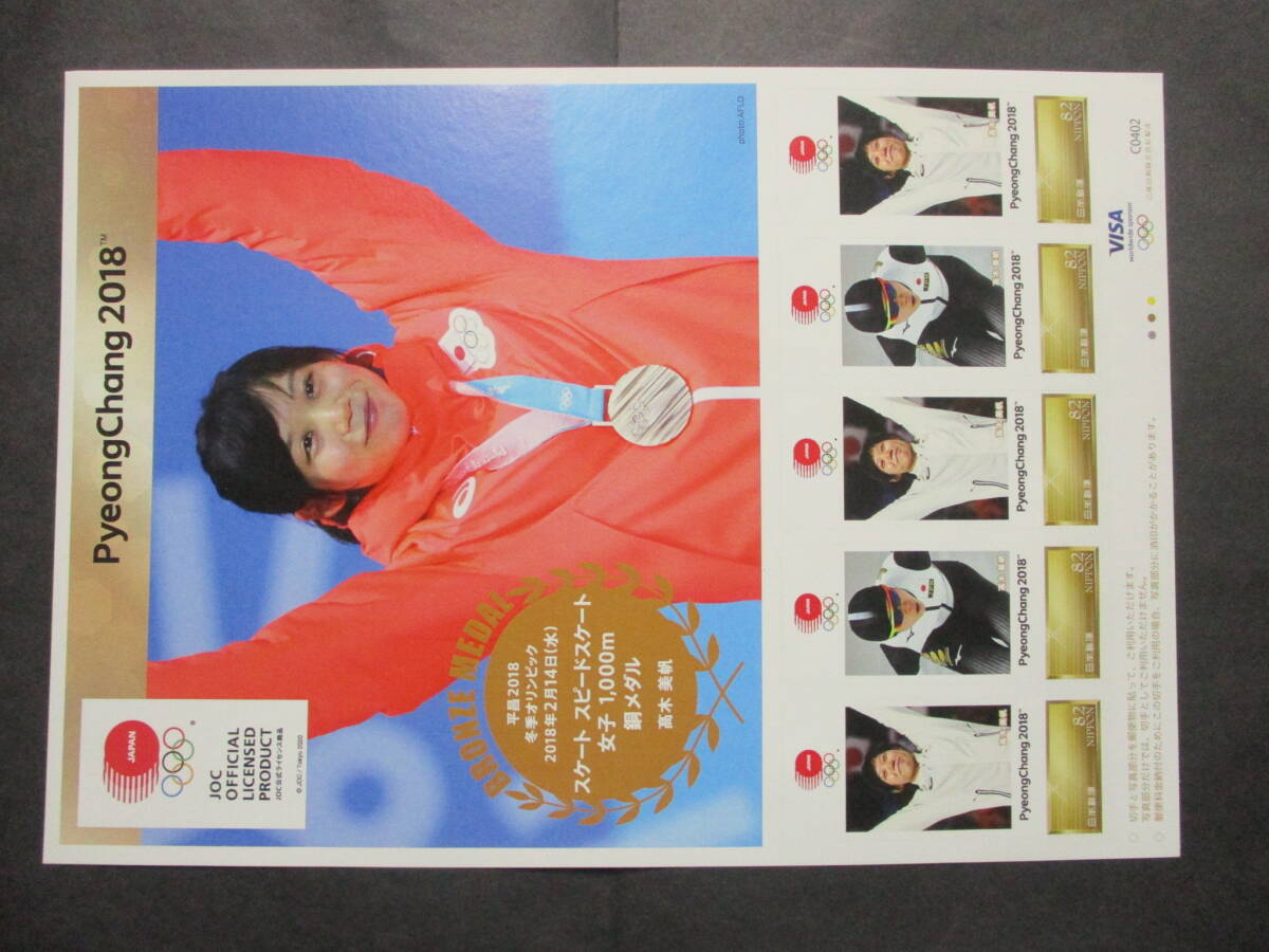 - ★フレーム切手(シール切手) 平昌五輪メダリスト(高木美保)(82円切手5枚)未使用 1シート★NO15★
