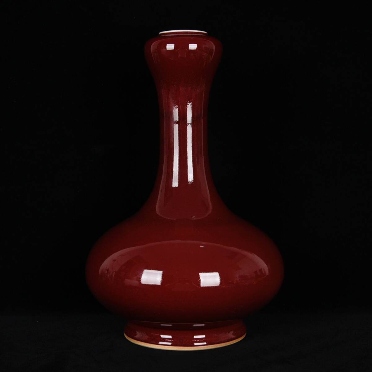 - 『館蔵珍品 清 康熙年製款 古陶瓷品 祭紅釉 蒜頭瓶』置物 賞物 貴重物品 収蔵品 中国古美術