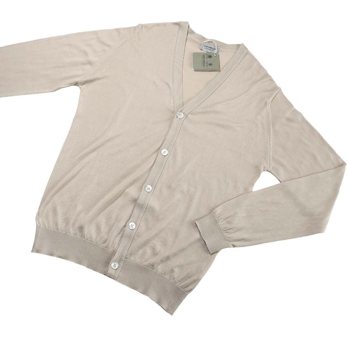 - メンズ L ジョンスメドレー 最高級コットン カーディガン WYATT ベージュ系 ALMOND JOHN SMEDLEY イギリス製★