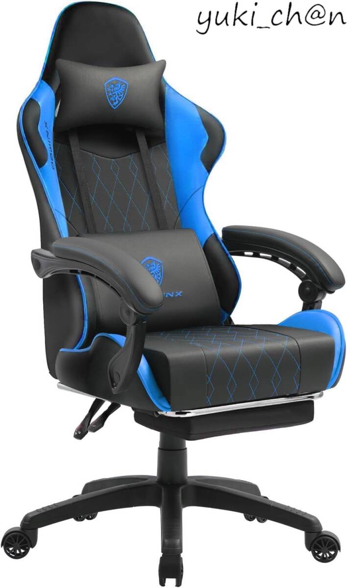 - ゲーミングチェア オフィスチェア 振動機能付き PUレザー オットマン付き 145°リクライニング おしゃれ ブラック&ブルー