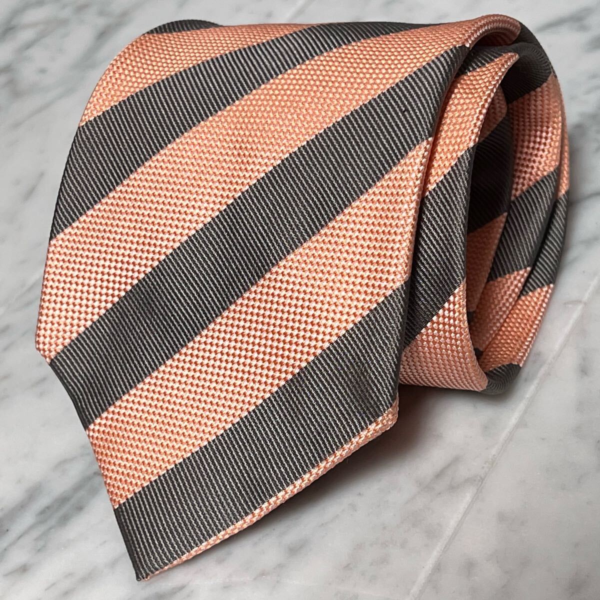 - 【美品】 999円~ クリケット ネクタイ ストライプ グレー サーモンピンク (R6)