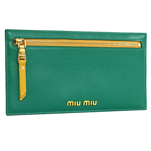 > 送料無料 本物 極美品 miumiu ミュウミュウ 両面ファスナースリムポーチ 財布 グリーン レザー レディース メンズ おしゃれ