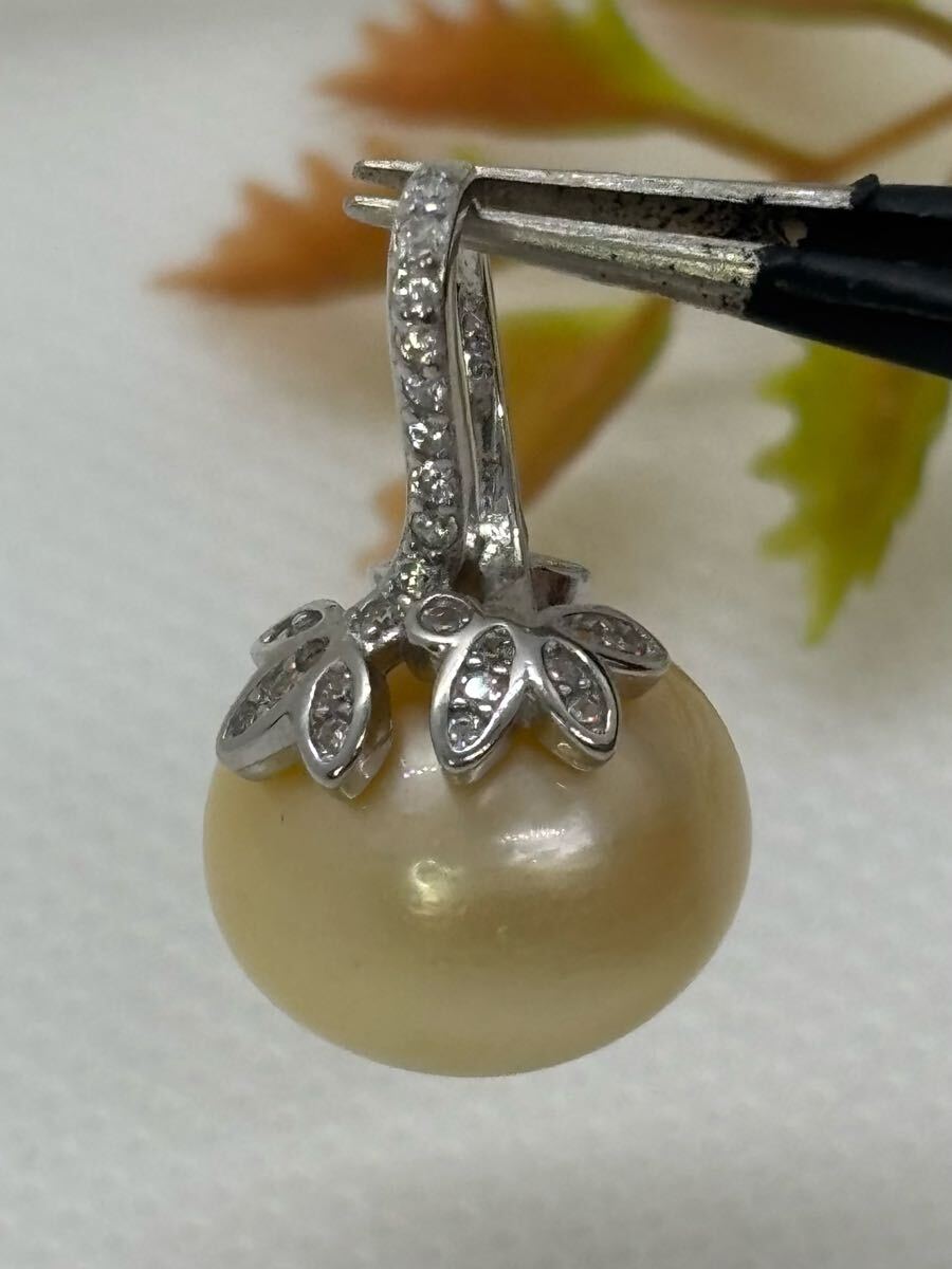 - 白蝶(シロチョウ)南洋真珠 薄いゴールド ペンダントトップ 新品(N554)