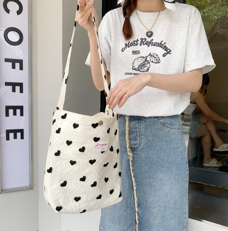- ショルダートートバッグ ハート柄 ホワイト・ブラック 韓国風