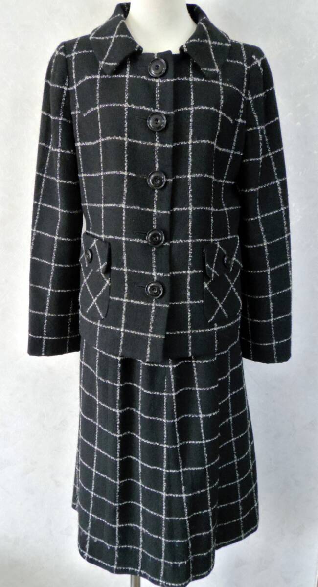 > SALE!! 即決!!レリアン ブラックベース チェック生地セットアップ スーツ 9号サイズ 中古 ウール96%