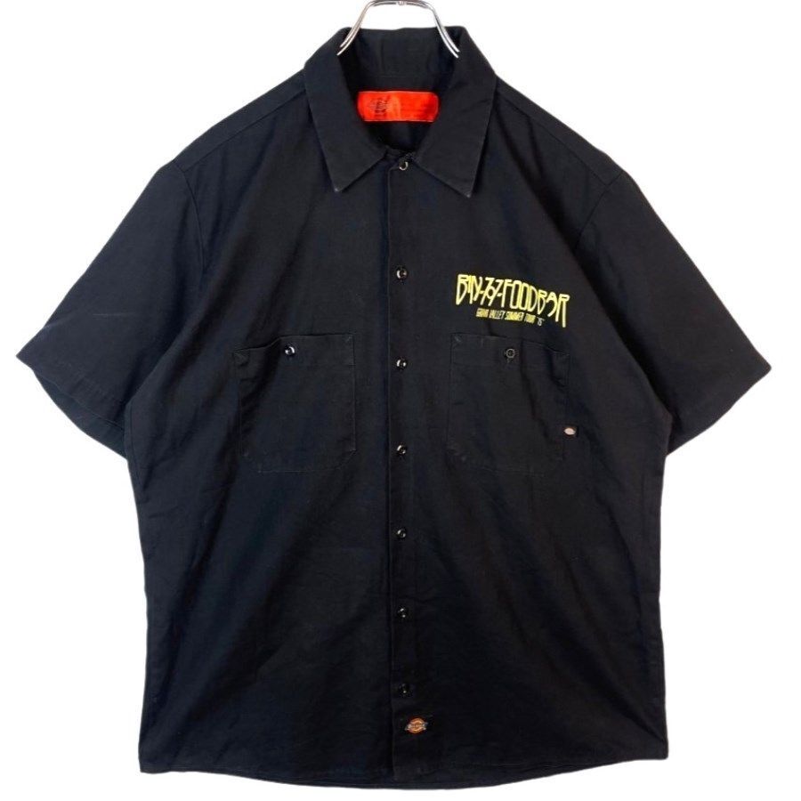 - ディッキーズDickies半袖ワークシャツツイル生地Bin 707 Foodbar企業系USAアメリカレストラン両面プリント黒ブラック黄色イエロー41120
