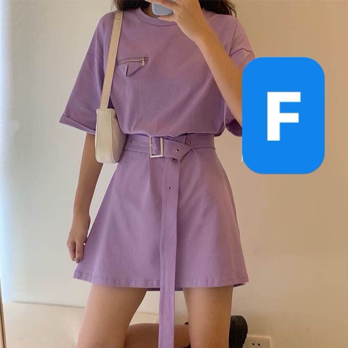- ワンピース チュニック ミニワンピース ミニスカ ミニワンピ 部屋着 スカート 部屋着 パジャマ ストリート 紫 F