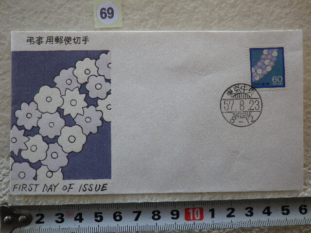 - FDC 弔事 花輪60円 1982年 1貼1消 説明書有 松屋●69●同梱大歓迎