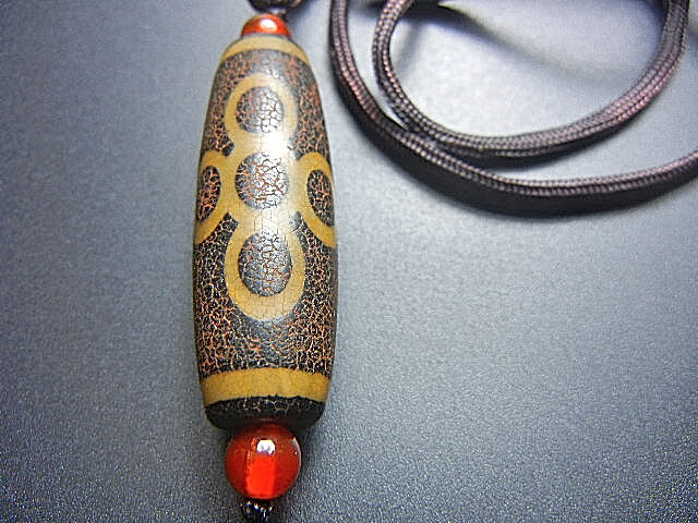 - ★西蔵至純天珠★XT9416 火供龍燐 五眼稲妻 窯焼き 最上級完美品 40mmネックレス長さ調節可(周長さ最長約66cm)入手難