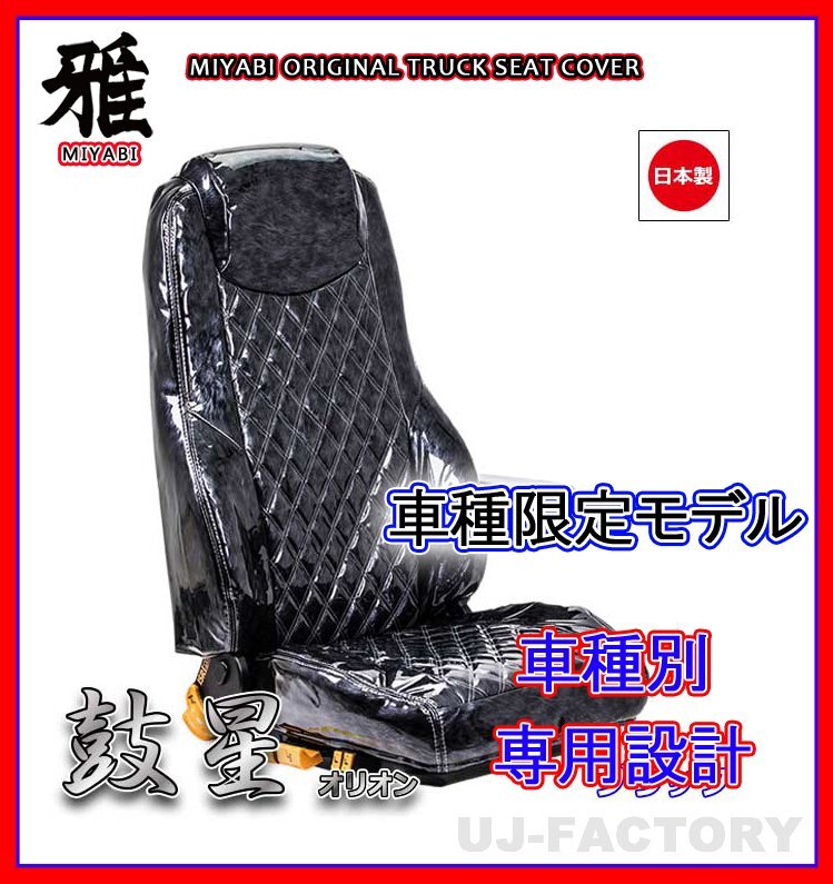 - 【MIYABI/国内製】★オリオン(鼓星) エナメル シートカバー/ブラック★スーパーグレート カスタム H8/4/~H15/3 運転+助手(TS-F010-B)