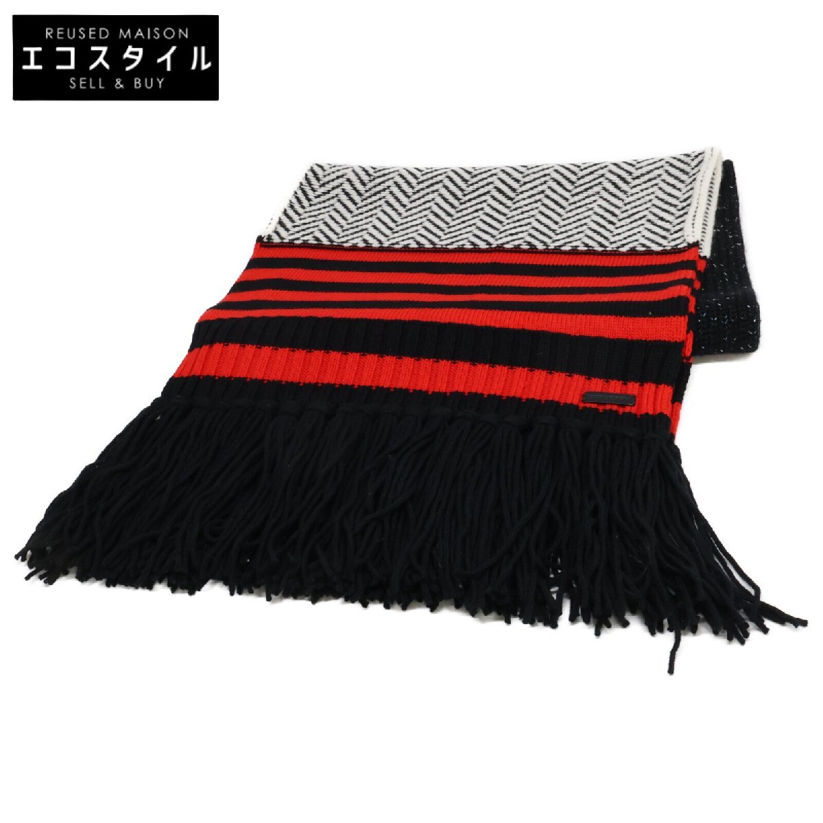 - BURBERRY バーバリー ボーダー フリンジ ロング マフラー レッド/ブラック/ホワイト