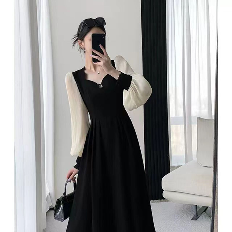- 新入荷高品質長袖ワンピ ドレス ひざ丈 大きいサイズあり レディース 2XL ブラック 可以尺