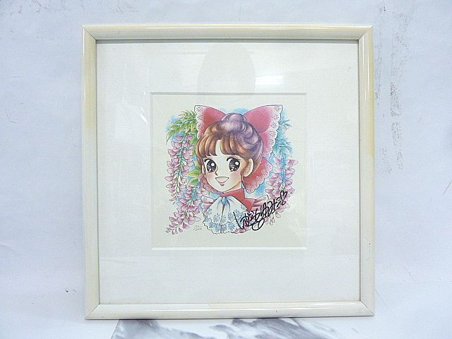 - ts886 いがらしゆみこ 美術館開館記念 複製 原画 102/2000 直筆 サイン入り 額サイズ 約32×32cm イラスト 漫画家 キャンディキャンディ