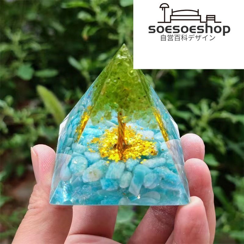 - 置物 インテリア 雑貨 ギフト プレゼント 贈り物 オルゴナイト 天然石 パワーストーン さざれ ペリドット 招財樹 開運 幸運
