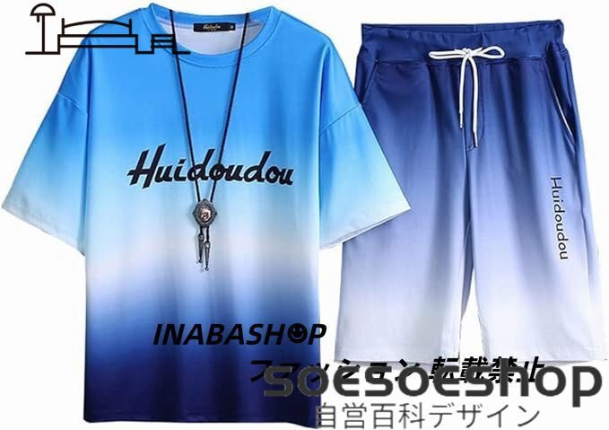 - 夏 ペアルック ジャージ上下セットアップ カップル 半袖パーカー メンズ レディーズ グラデーション Tシャツ スポーツ 韓国 大きいサイズ
