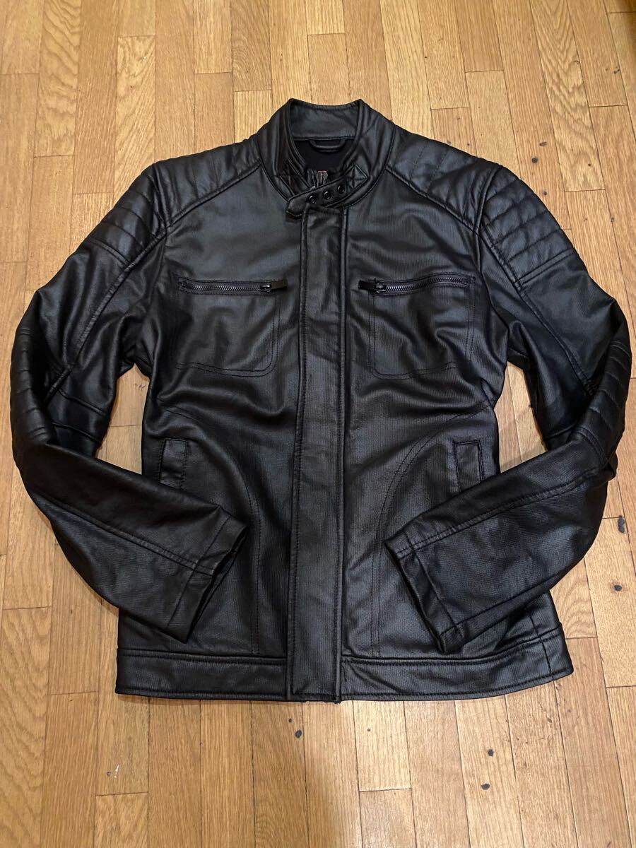 - 美品ZARAパテッドシングルPUレザーライダースブラックL ライダースジャケット肩パッドパディングコーティング立ち襟ライディングウェア