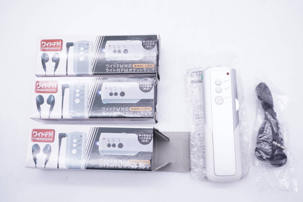 - 【 新品 3個セット 】 ワイドFM ポケットラジオ ★ LEDライト付き 白x銀 単四電池x2本使用(別売)★ 防災 災害 非常用