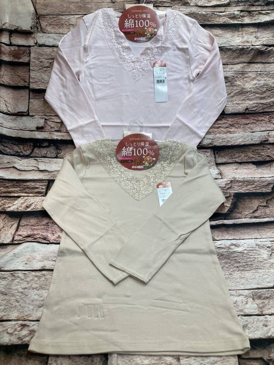 - 送料無料!エレガンスな着こなしを演出!広幅Vレース 綿100% 椿オイル加工 8分袖インナー(2色から)1枚
