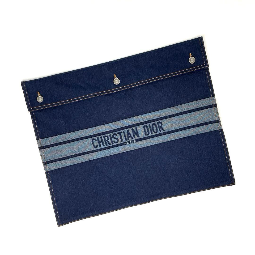 - 極美品■Christian Dior ディオール クラッチバッグ CD ボタン シルバー金具 ハンドバッグ ブックトート ジャガード ブルー デニム A4可