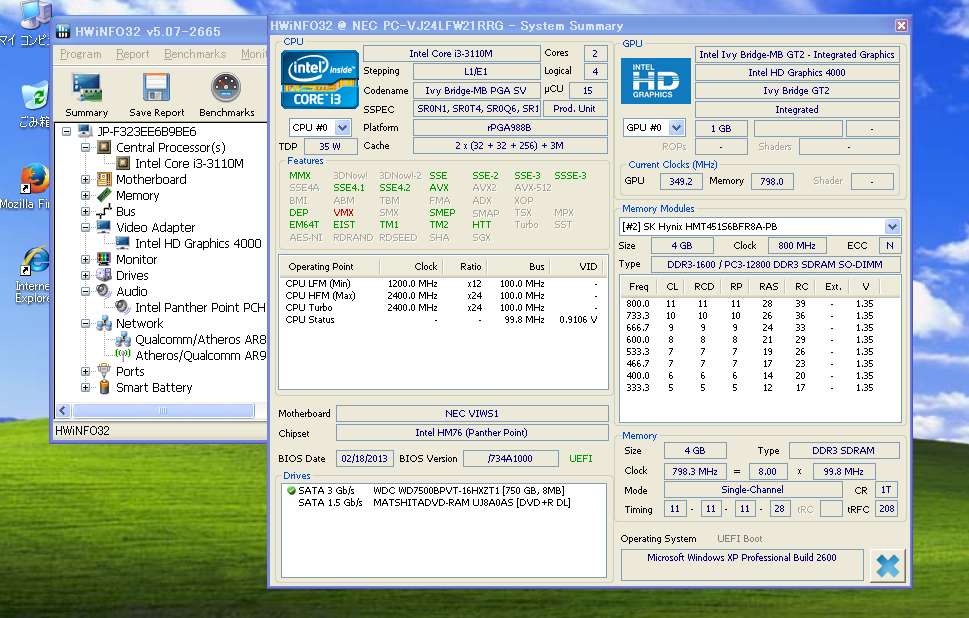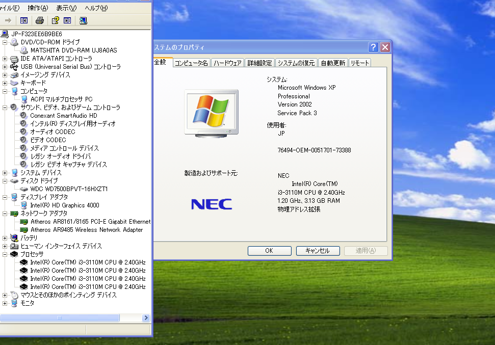 - Windows XP,7,8,10 選択可 NEC VersaPro VF-G Core i3-3110M/メモリ4GB/750GB/無線/カメラ/USB3.0/15.6インチ/リカバリ作成/2161