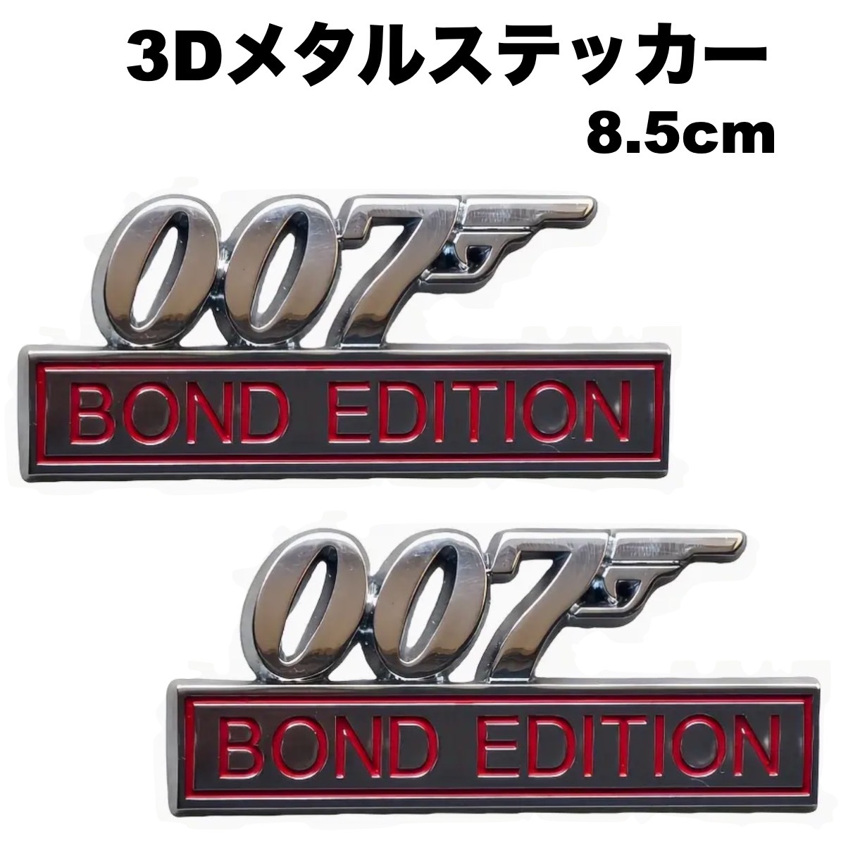 > 2個セット エンブレム メタルステッカー 007 エディション 金属 8cm シルバー レッド 車外アクセサリー 車用 ロゴ 外装 シール t3855