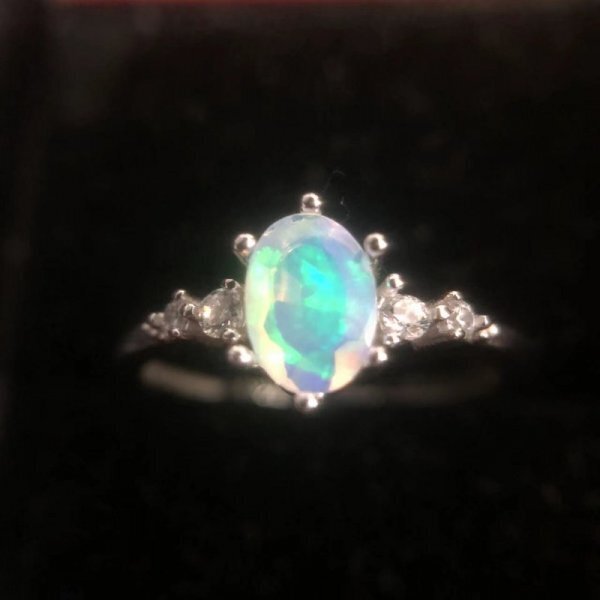 女性用925シルバー天然オパールリング、5×7mm、天然宝石