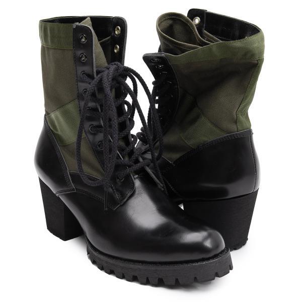 > ジュンヤワタナベコムデギャルソン ナイロンテープ切替ワークブーツ 黒カーキM (24.5位)