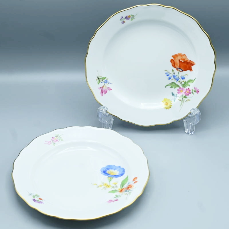 - M02-t038 美品 Meissen マイセン ベーシックフラワー 四つ花 ケーキプレート 約18cm 2枚まとめ 朝顔/ケシ 090110 金彩 一級品