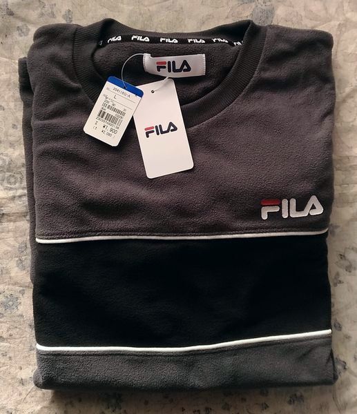 > 新品 FILA マイクロフリース切替ロングTシャツ Lサイズ チャコール 長袖Tシャツ 長T ロンT 部屋着 フィラ