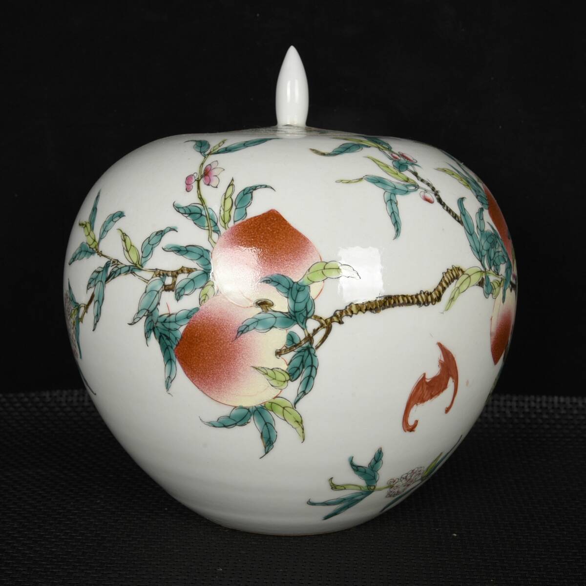 - 『館蔵珍品 清 雍正年製款 古陶瓷品 粉彩 八桃紋 西瓜罐』置物 賞物 貴重物品 収蔵品 中国古美術