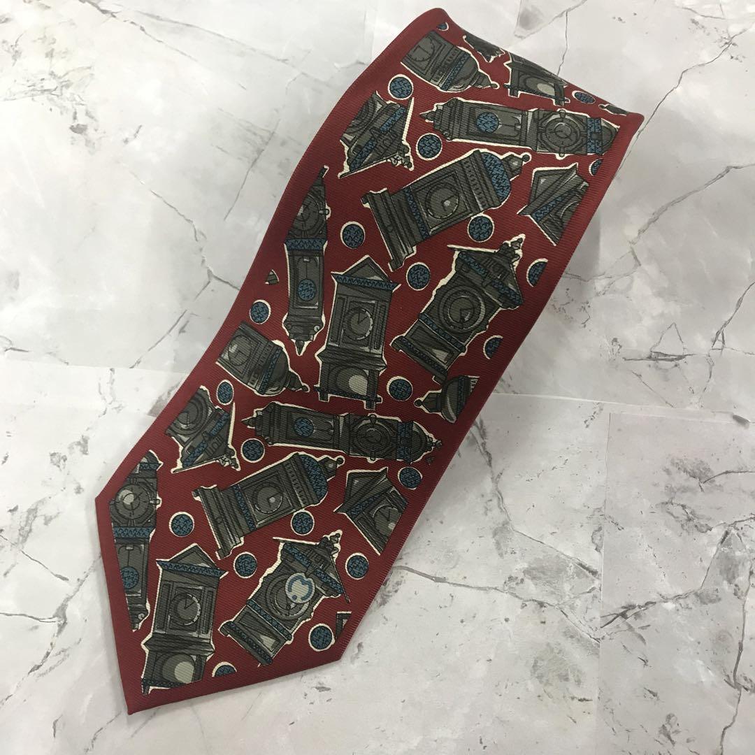 - ミラショーン ネクタイ 赤 えんじ 総柄 シルク 時計 ドット【n524】