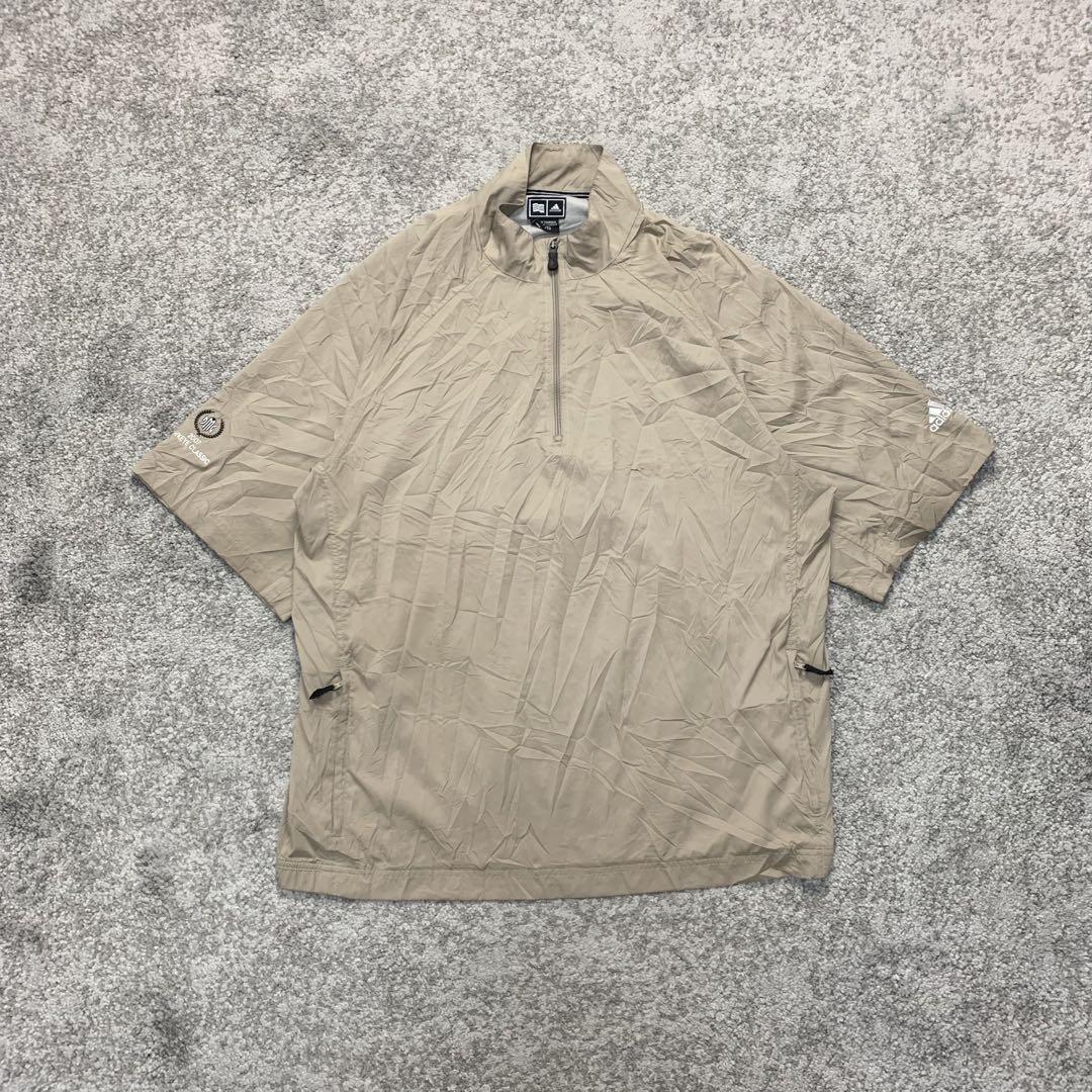 - アディダス ハーフジップ 半袖 ナイロンプルオーバー ジャケット ベージュ