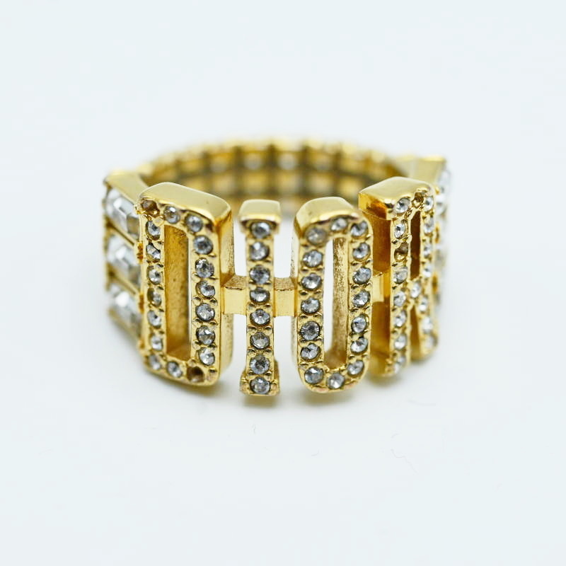 - M03-k001 Christian Dior クリスチャンディオール ロゴ ラインストーン GP リング S(10号)ゴールド