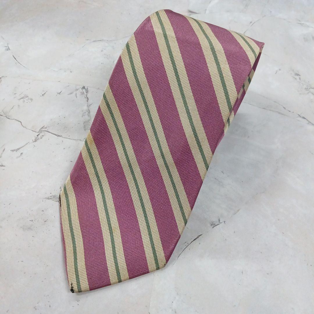 - ラルフローレン ネクタイ 紫 ストライプ柄 絹 シルク 日本製【n537】
