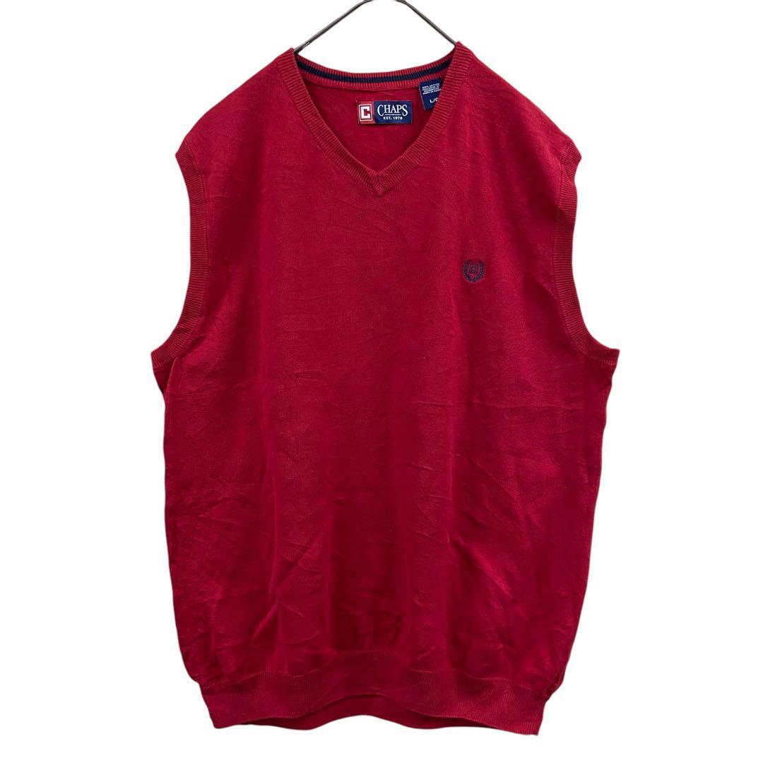 - チャップス メンズベスト ニット Vネック コットン100% 赤 L【2576】